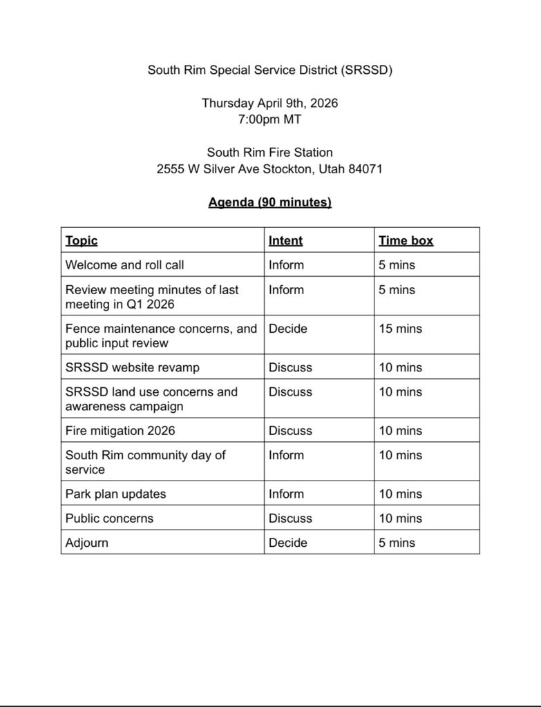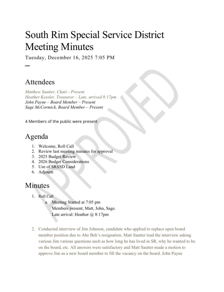 The South Rim Special Service District Board Members: